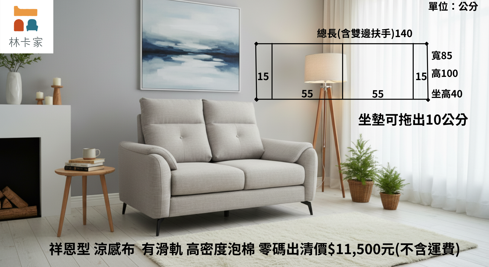 兩人座 祥恩型 涼感布 有滑軌 高密度泡棉